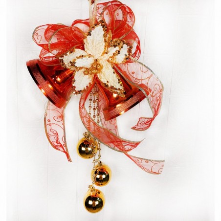 聖誕樹雙鐘吊飾-滾邊鐘-紅8吋